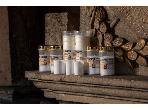 Liata sviečka Madona v bielej farbe, horí až 5 dní.