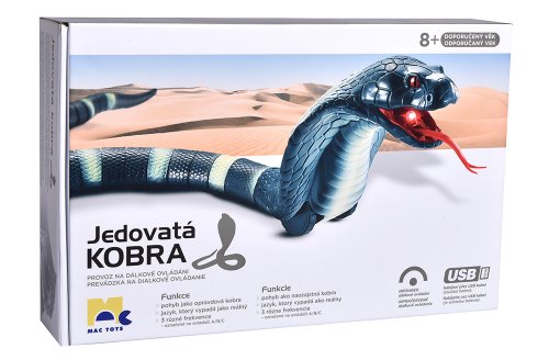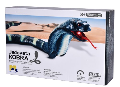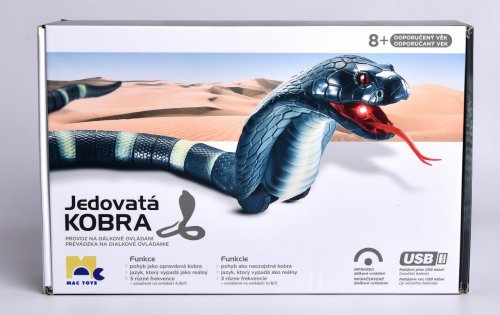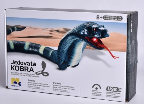 Plazí sa po zemi ako živá kobra. Kobra sa nabíja cez USB kábel. Dve farebné prevedenia.