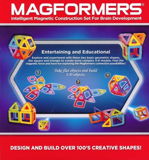 Magformers-14 je základná geometrická sada, z ktorej je možné vytvoriť prekvapivo mnoho rôznych jednoduchých stavieb, zvierat a geometrických telies.