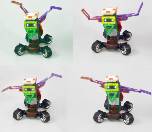 Nový univerzálny box s možnosťou stavania neuveriteľného množstva pojazdných robotov, bugyn, nákladiakov či kozmických vozítok. Vďaka dômyselnej kombinácii dlhých dielikov a plastových nástavcov sú výsledné modely prekvapivo veľké a zároveň stabilné. Čerešničkou na torte sú potom bonusové dieliky (audiomodul, battery pack a tyčky Geomag), ktoré výsledok oživia svetelnými a zvukovými efektmi. Bugy Robot box je určite novým hitom v kategórii boxov. Veľmi obľúbený bude najmä u chlapcov a zaujme aj tých starších, ktorí už klasickým domčekom a autíčkam odrástli. So zručnosťou a zrelšou invenciou výrazne vzrastá kreatívny potenciál, takže ani s pribúdajúcim vekom nikoho neomrzí. Box obsahuje veľmi populárny transform kolieska 2 podvozky, pri ktorých je možné plynule a nezávisle na sebe natáčať smer každého kolesa o uhol 0 - 90 °. Vďaka kombinácii natočenia každého zo 4 kolies je možné dosiahnuť nielen zmenu smeru jazdy kolmo k pôvodnému, ale aj ľubovoľný šikmý smer alebo nechať robota či vozítko jazdiť po kružnici, popr. len nechať otáčať na mieste okolo vlastnej osi. Kolesá sú pomerne široké, takže pri použití len jedného podvozku môžete konštruovať aj jednostopové vozidlá. Ľahko tak z jedného boxu postavíte 2 rôzne motorky. Najvďačnejšia je ale box na stavanie pojazdných robotov, ktorí môžu mať vďaka 2 nástavcom s pántom voľne nastaviteľné paže v ramenách a to ako vo vertikálnom tak aj vodorovnom smere. Nástavce s pántom možno využiť aj na natáčanie hlavy, ako nastaviteľné krídla lietadiel a vtákov alebo ako ohybné závesy pre kĺbovo prepojené vozítka (prívesy či vagóniky). Nástavce s pántom nájdete iba v tomto boxe, alebo ich môžete zakúpiť samostatne. Vďaka trom trojbokým nástavcom a bohatej výbave všetkých druhov obdĺžnikov je možné budovať veľmi pevné kostry stavieb do prekvapivej výšky aj dĺžky. U robotov je možnosť kombinovať dva úplne rôzne typy hláv: veľké trojuholníkové s veľkými očami (v štýle ET . mimozemšťana) alebo menšie hranaté s modro svietiacimi očami a to za použitia tzv. battery packu alebo zdrojového bloku. Ten sa dá ale rovnako dobre využiť aj ako základ pre prednú masku áut, kde modré diódy plnia funkciu rozsvietených reflektorov. Naozajstnou lahôdkou je potom možnosť pripojenia audiomodulu do jednej zo 4 zdierok zdrojového bloku. Stlačením príslušného spínača potom audiomodul prehráva po dobu asi 20 sekúnd jeden z 8 rôznych zvukových efektov: vláčik, auto, lietadlo, robot, sanitka, polícia, disko hudba a vlastný zvukový záznam. Veľmi obľúbená je práve funkcia diktafónu, kedy modul počas stlačeného tlačidla nahráva zvuky zabudovaným mikrofónom. Môžete tak do robota naučiť hovoriť rôzne modulovaným hlasom či vytvárať vlastné nápadité ruchy, popr. do neho nahrať zvukové stopy vytvorené v počítači či telefóne. Počet dielikov: 40 dielikov