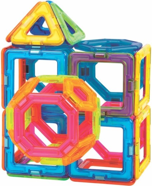 Kreatívna magnetická stavebnica Magformers umožňuje zostavovať veľké množstvo trojrozmerných objektov pomocou dvojrozmerných plastových mnohouholníkov. Magformers precvičuje jemnú motoriku, podnecuje tvorivosť, učí deti farby a základné geometrické tvary. Rozmery dielikov a vhodne volené tvary zaisťujú maximálnu možnú bezpečnosť hračky. Materiál, z ktorého je stavebnica vyrobená spĺňa najprísnejšie hygienické a zdravotné kritériá. Dieliky sú dostatočne veľké, nemožno ich prehltnúť a sú prakticky nerozbitné MAGFORMERS možno veľmi dobre kombinovať aj so známou magnetickou stavebnicou Geomag. ilustračné video magnetickej stavebnice Magformers