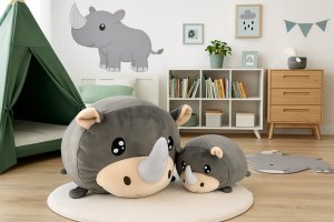 Rozkošné mláďa nosorožca so svojou milujúcou mamičkou. Set dvoch vyšívaných tematických plyšových hračiek z veľmi kvalitnej mäkkej plyše, vhodné pre všetky vekové skupiny. Veľkostne menšie zvieratko je vhodné aj pre najmenšie deti ako maznáčik alebo hračka a staršie deti využijú väčšie zvieratko napríklad ako vankúšik na cesty, do auta, alebo ako dekorácia do svojich izbičiek. Veľkosť zvieratiek je 20 a 40 cm. Použité materiály: Vrchná látka 100% polyesterové vlákno, výplň 100% polyester. Možnosť prania v práčke na 30 °C. Balené v priehľadnom sáčku. Vhodné pre deti od 0 mesiacov.