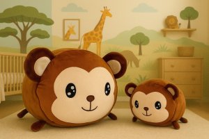 Rozkošné opičie mláďa so svojou milujúcou mamičkou. Set dvoch vyšívaných tematických plyšových hračiek z veľmi kvalitnej mäkkej plyše, vhodné pre všetky vekové skupiny. Veľkostne menšie zvieratko je vhodné aj pre najmenšie deti ako maznáčik alebo hračka a staršie deti využijú väčšie zvieratko napríklad ako vankúšik na cesty, do auta, alebo ako dekorácia do svojich izbičiek. Veľkosť zvieratiek je 20 a 40 cm. Použité materiály: Vrchná látka 100% polyesterové vlákno, výplň 100% polyester. Možnosť prania v práčke na 30 °C. Balené v priehľadnom sáčku. Vhodné pre deti od 0 mesiacov.