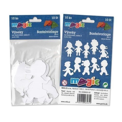Súprava 10 ks výsekov s postavičkami. Materiál biely kartón 220g. Ideálne na maľovanie - frotáž s magickými voskovkami. Nevhodné pre deti do 3. rokov, obsahuje malé dieliky. Rozmery obrázkov cca 4cm x 7cm.