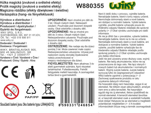 Magický prútik bude skvelým doplnkom na karneval alebo haloweenskú párty! Pri stlačení tlačidla na rukoväti začne prútik vydávať kúzelné melódie a rozsvieti sa!