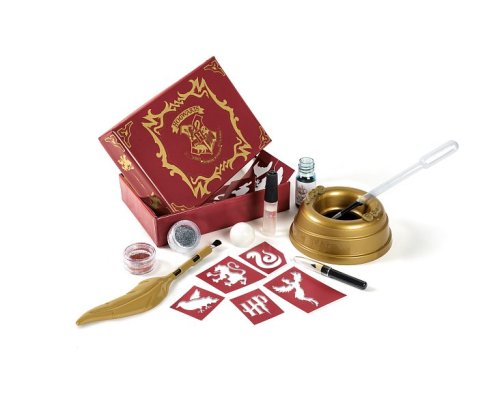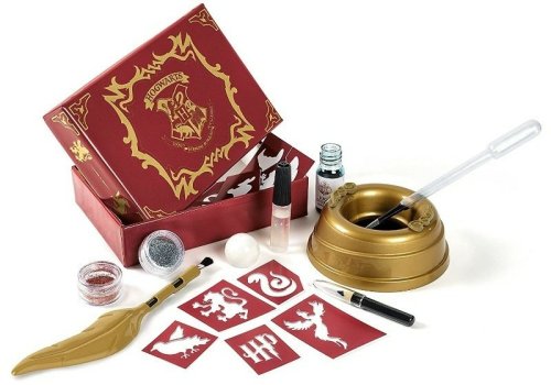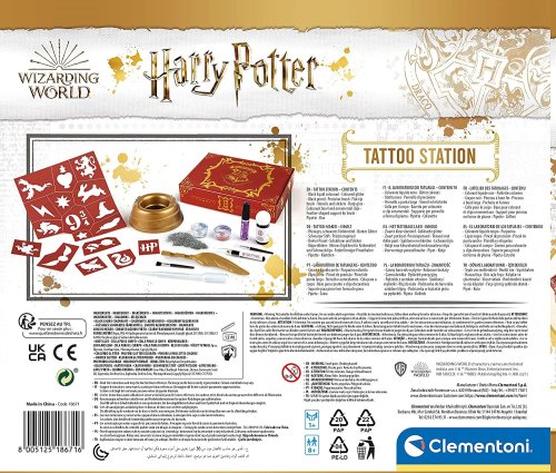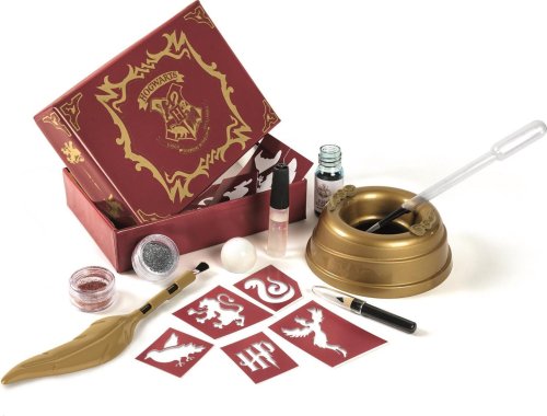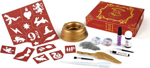 Táto sada obsahuje všetko potrebné na vytvorenie fantastických tetovaní v Harryho Potter štýle. V balení nájdete trblietky, šablóny, štetec a ceruzky pre dokonalú imitáciu kúzelných tetovaní z obľúbeného sveta Harryho Pottera. Použite špeciálny aplikátor v tvare kúzelného pierka pre ľahké prichytenie trblietavého prachu na koži a vytvorenie vlastného personalizovaného tetovania. Súčasťou sady je praktický stôl na usporiadanie všetkých potrebných súčastí. Zábavná a kreatívna súprava pre všetkých fanúšikov Harryho Pottera, ktorí chcú vytvoriť kúzelné tetovanie.