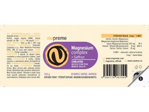 Doplnok stavy Magnesium + šafran chelát obsahuje kombináciu troch organických foriem horčíka (bisglycinát, taurát a treonát), vitamín B6 a extrakt šafranu.