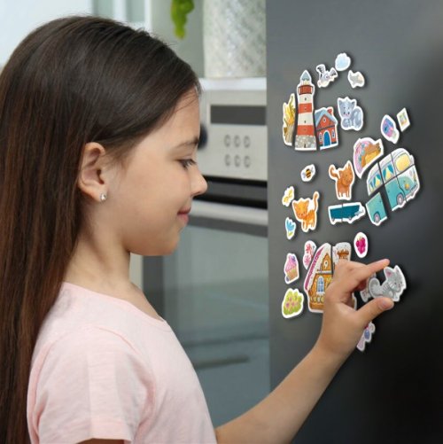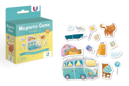 Magnetická hra Mačka a cestovanie obsahuje 20 magnetických dielikov, ktoré deťom umožňujú vytvárať rôzne scény. Rozmer krabičky: 10 x 14 x 5 cm Vhodné od 3 rokov