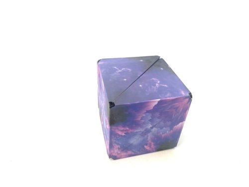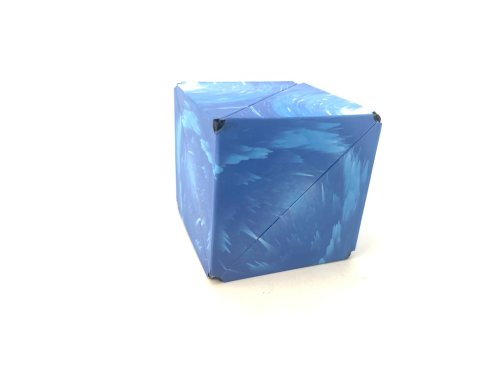 Povrch kocky je opatrený zaujímavými farebnými vzormi pripomínajúcimi abstraktné prírodné motívy, ako sú modré a tyrkysové odtiene evokujúce vodnú hladinu, červené a ružové tóny pripomínajúce ohnivé pohyby, alebo fialovo-ružové obláčikové motívy, ktoré pridávajú kocke estetickú hodnotu. Každá strana kocky je tvorená menšími trojuholníkovými segmentmi, medzi ktorými sú umiestnené magnety, čo umožňuje ich ľahké posúvanie a zmenu konfigurácie.