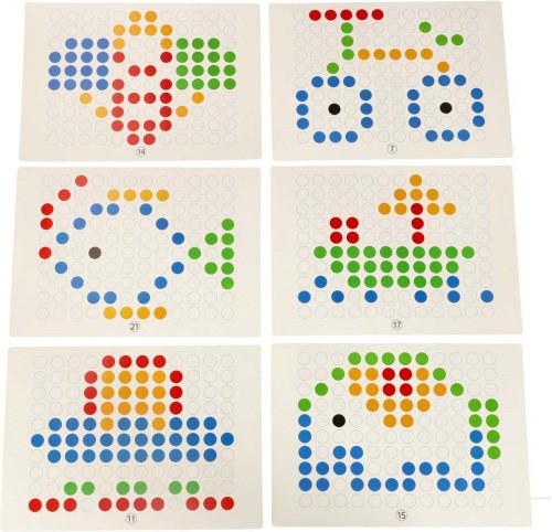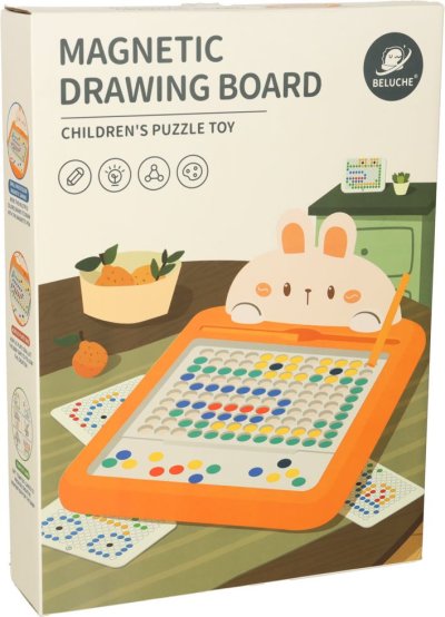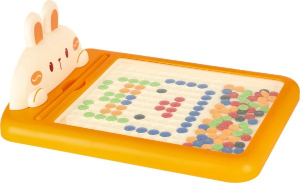 2x magnetické pero na usporiadanie obrázkov 118 magnetických tlačidiel na plastovej tabuli s roztomilým zajačikom 12 priložených kariet s nápadmi na vzory podporuje kreativitu detí a precvičovanie manuálnych zručností