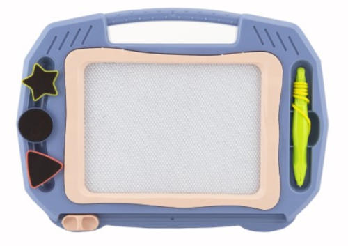 Magnetická kresliaca tabuľka v modrej variante pre všetkých malých umelcov. Súčasťou balenia je magnetická tabuľka, kresliace pero na povrázku a tri magnetky v tvare kolieska, hviezdičky a trojuholníka. Deti pomocou pera a magnetov môžu na tabuľku písať aj kresliť a následne jedným pohybom jazdca v spodnej časti tabuľky obrázok zase zmazať. Rozmery tabuľky sú 32 x 22 cm. Veľkosť priestoru písania a kreslenia je 18 x 13 cm. Vhodné pre deti od 3 rokov.