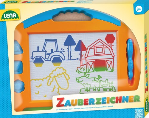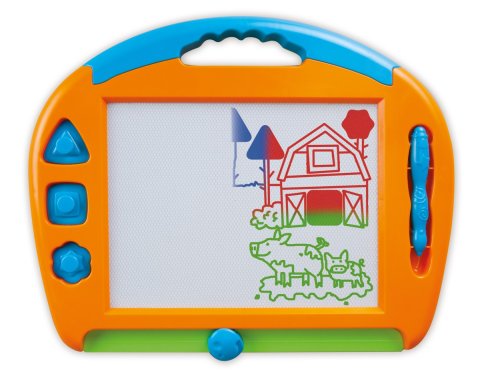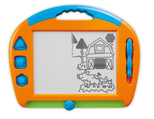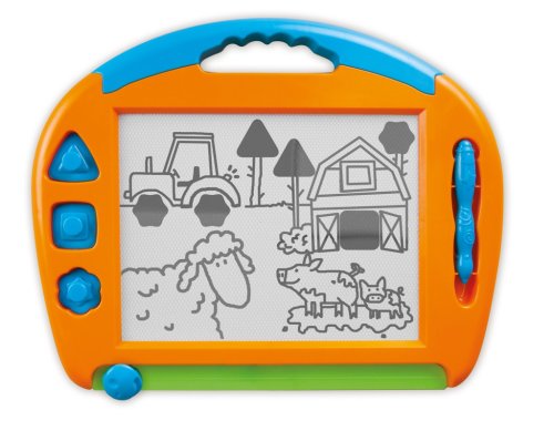 Plastová magická tabuľka je hračka, ktorá trénuje kreativitu. Obsahuje ceruzku s kovovým hrotom, 3x pečiatku. Dieťa môže písať alebo kresliť s ceruzkou pevne pripojenou na povrázku a pomocou troch tvarovaných magnetických pečiatok vytvárať vzory a tvary. Lišta na mazanie obrázkov umožňuje deťom vyčistiť dosku v priebehu niekoľkých sekúnd. Hlavné vlastnosti: obsahuje 3 plastová magnetizovaná pečiatka ceruzka pripojená povrázkom lišta pre mazanie snímok spĺňa všetky bezpečnostné normy