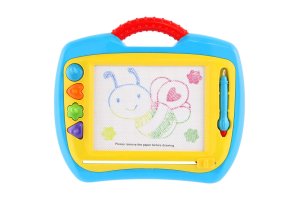Začína vaše dieťa maľovať po všetkých čistých plochách, ktoré vaša domácnosť ponúka? Doprajte mu z maľovania ešte väčšiu radosť. Vďaka magnetickej tabuľke vaše dieťa namaľuje magnetickou ceruzkou svoje dielo bez toho, aby ušpinilo seba, svoje okolie alebo spotrebovalo papier. Ľahkým pohybom zo strany na stranu, je možné celé dielo zmazať a začať znova. Rozmer krabice: 38 x 32 x 5 cm Vhodné od 3 rokov.