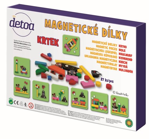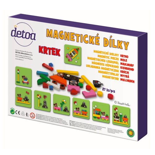 Na kovovú tabuľku si deti môžu skladať nepreberné množstvo obrázkov s motívom Krtka a jeho kamarátky Myšky. Výrobok podporuje zručnosť a fantáziu detí. Odporúčame aj na cesty. Je vhodný pre deti od 3 rokov.