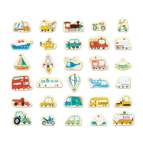 Sada magnetov s vozidlami, ktorá obsahuje 30 klasických vozidiel, vrátane áut, motocyklov, lietadiel, lodí a dokonca aj UFO. Keď sa deti učia o rôznych spôsoboch dopravy, môžu si na základe vozidiel vytvárať vlastné príbehy, čo zvyšuje ich jazykové a komunikačné zručnosti. Možno používať na stojane Hape alebo ako hračku na chladničku, tieto magnety priľnú na akýkoľvek kovový povrch. Rozmer balenia: 24,1x24,1x4,1 cm. Vek 18m+