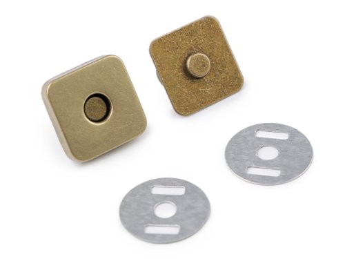 Magnetické zapínanie je veľmi obľúbené. Má štvorcový tvar. Zapínanie sa používa na uzatváranie tašiek, peňaženiek alebo kabeliek. Návod na použitie: 1) Podľa nožičiek na magnete si vyznačíme prierezy a prestrihneme látku. 2) Nožičky magnetu prestrčíme tak, aby prešli látkou a vykukli na rubovej strane. 3) Na nožičky nasadíme okrúhly kovový protikus, stlačíme k sebe a nožičky roztiahneme do strán. 4) Druhý diel nasadíme rovnakým spôsobom a magnety môžeme zapnúť.