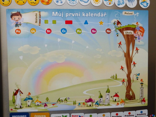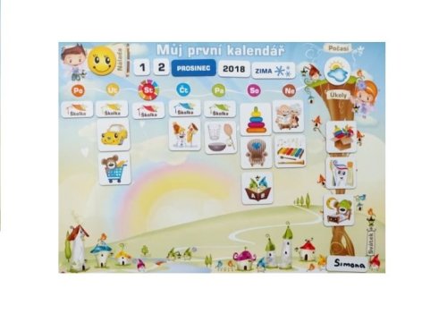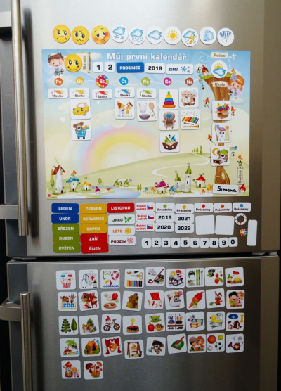 Originálny magnetický kalendár pre deti, ktoré sa rady hrajú s magnetkami. Deti sa zábavnou formou učia plánovať svoje obľúbené činnosti, úlohy, spoznávať farbičky, základné tvary a množstvo ďalšej zábavy. Kalendár má magnetickú podložku v rozmere 420 x 297 mm, ktorá sa "prichytí" napr. na chladničku (alebo na plechovú tabuľu) a 114 magnetiek, ktoré si deti prikladajú na podložku. Všetky magnetky majú zaoblené rohy.