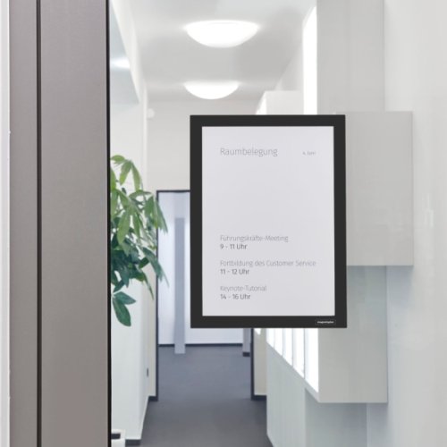 Zvýraznite dokument, otváraciu dobu alebo plagát pomocou samolepiaceho magnetického rámčeka Magnetofix. Vďaka farebnému rámčeku o šírke 9 mm upozorníte na všetky dôležité informácie. Vložíte doň papier s veľkosťou A4 (210 x 297 mm). Je dobre čitateľný. Rámček má totiž matný antireflexný povrch ako klasické priesvitné fólie. Použijete ho v kancelárii, sklade, obchode, vo výrobnej prevádzke aj doma.