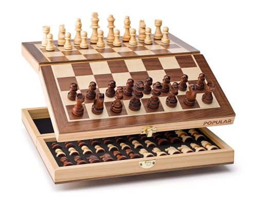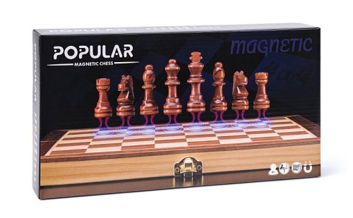Veľmi kvalitné prevedenie šachu v praktickom drevenom boxe je spracovaná ako intarzia dvoch farieb dreva.
