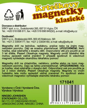 Originálny výrobok s licenciou Krtka je zo špeciálnej magnetickej fólie a drží na akomkoľvek magnetickom povrchu. Jednotlivé magnetky sa dajú ľahko premiestňovať. Deti si s nimi užijú veľa zábavy a zábavy. Jednotlivé magnetky môžete z magnetickej fólie vylúpnuť a ideálne sú napríklad na chladničku! Rozmer balenia: 10,5 x 27 cm Vhodné pre deti od 3 rokov