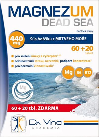 Magnezum Dead Sea Da Vinci Academia - sila horčíka z Mŕtveho mora. Na zníženie únavy a vyčerpania, odolnosť voči stresu a normálnu činnosť svalov.