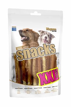 Prírodná mäsová pochúťka pre psov, tyčka z hovädzej kože obtočená plátkom lahodného kuracieho mäsa. Slúži ako odmena pri hre, výcviku alebo ako doplnok stravy pri cestách. 100% čisté kuracie mäsotyčinky z hovädzej kože veľmi chutný vhodný pre motiváciu zaťažujú organizmus dobre stráviteľný bez negatívnych účinkov na zuby a ďasná uzatvárateľný zipsový uzáver obalu. Zloženie: kuracie mäso, hovädzia koža, škrob, sorbitol, glycerín. tuku 2%, hrubý popol 3%, hrubá vláknina 4%, vlhkosť 22%. Kŕmny návod: Podávajte ako maškrtu, odmenu a podobne.