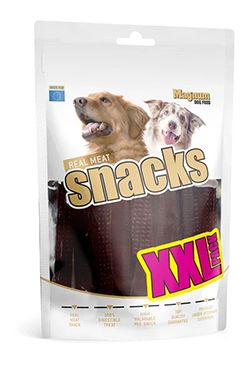 Mäkká, prírodná mäsová pochúťka z kačacej svaloviny formovaná do prúžkov, ktoré sa ľahko delia na menšie časti. Každodenná pochúťka pre malých, stredných i veľkých psov. Mäkké kačacie pásiky (dĺžka cca 11 cm) sú ideálnou odmenou za splnený povel. 100% prírodná masová pochúťka pre psov. Slúži ako odmena pri hre, výcviku alebo ako doplnok stravy na cestách. ďasná. Vrecko má vychytané uzatváranie. Na vrchu balenia je zips, vďaka ktorému sa jeho obsah nevysúša a mňamka je dlhšie čerstvá a chutná. Zloženie: kačacie mäso, škrob, sorbitol, glycerín. Analytické zložky: hrubý proteín 40%, obsah tuku 1%, hrubý popol 4%, hrubá vláknina 2%, vlhkosť 23%. Kŕmny návod: Podávajte ako maškrtu, odmenu a podobne.