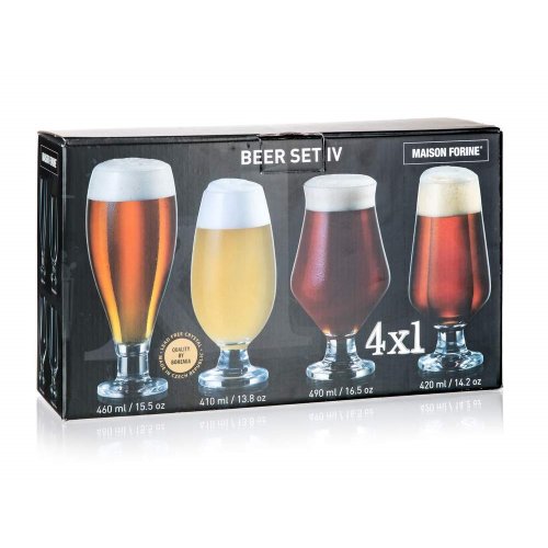Súprava pohárov na pivo s objemom 630, 570, 520 a 540 ml. Súprava obsahuje 4 ks pohárov, každá má iný tvar. Poháre sú vhodné na každodenné použitie alebo pri organizovaní party u vás doma.