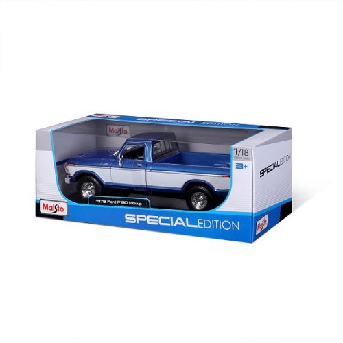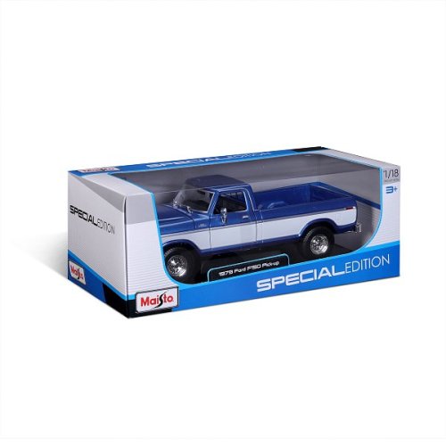 Maisto 1:18 Ford 1979 F150 Pick up Truck metal modro-biely model auta. Modely autíčok Maisto zo špeciálnej edície sú odolné na hranie a zároveň si zachovávajú maximálnu možnú mieru detailov. Ideálne ako darček pre každého fanúšika áut. Precízny zberateľský odliatok. Otváracie dvere. Detailný motor a interiér. Vlastný dvojfarebný lak. Chrómovaná mriežka a ozdobné prvky. Gumové pneumatiky. Rozmery balenia: 16,5x33x12,7cm. Vek: 3+