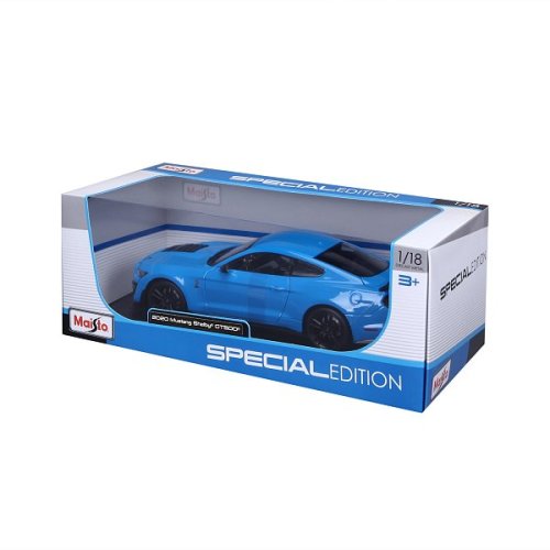 Special Edition 1:18 2020 Mustang Shelby GT500, modrý. Modely Special Edition sú zbierkou krásneho designu s vysokým dôrazom na presnosť detailov. Modely sú vyrobené z liateho kovu s plastovými detailmi. Niektoré z modelov majú nastaviteľné sedadlá. Plne funkčné riadenie, detailný podvozok so samostatným výfukovým systémom a odpružené kolesá. Väčšina z modelov Special Edition má otváracie dvere, kufor alebo kapotu. Model je namontovaný na plastovom stojane. Balené v krabičke. Nevhodné pre deti do 3 rokov. Rozmery balenia: 12,7 x 33 x 16,5 cm. Vek 3+