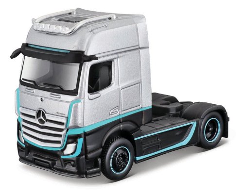 Mercedes-Benz Actros 1851, strieborno-čierna. Úplne nové kovové modely trackov s plastovými doplnkami. Modely majú gumové kolieska, otváranie prednej kapoty, detailné prevedenie interiérov, vrátane výrazného farebného prevedenia, ktoré im umožňuje vyniknúť od ostatných modelov. Balenie: 16,45 x 8,25 x 7,6 cm. Vek: 3+