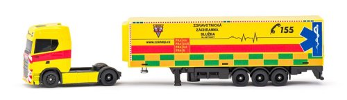 Model kontajnerového návesu Scania 770S GOLEM EMS v českom dizajne. Kovový model s plastovými dielmi v mierke 1:64. Rozmer balenia: 27,5x8x4,8 cm. Vek 3+