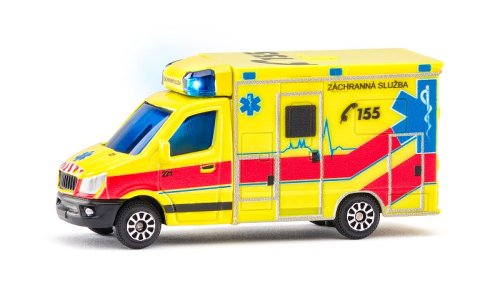 Model sanitky v českom designe. Sanitka má funkčné svetlá a zvuky. Kovový model s plastovými dielmi v rozmere 3''. Funguje na 3xAG3 batérie, ktoré sú súčasťou balenia. Rozmer balenia: 11,5x14x5 cm. Vek 3+