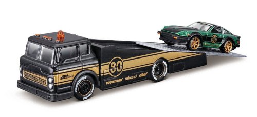Ramp Truck + 1980 Datsun 280ZX (S130). Jedna z najdlhšie fungujúcich radov na zákazku odlievaná pod tlakom, tieto sady pre 2 vozidlá sú silnejšie ako kedykoľvek predtým. Či už vás na budúci autosalón ťahajú alebo vezú na valníku, Elite Transport je tou správnou cestou. Vrátane dvoch vozidiel. Telo z tlakovo liateho kovu s plastovými dielmi. Rozmery: 22,2x17,15x4,2cm. Vek: 8+
