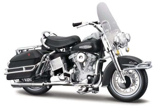 Harley-Davidson Motorcycles 1:18 1966 FLH Electra Glide®, čierna. Model zo série 41 collection v mierke 1:18 má veľmi dokonalé, detailné prevedenie jednotlivých častí a kvalitné farebné prevedenie. Kovový model s plastovými doplnkami. Model má riaditeľnú vidlicu, pohyblivý bočný stojan. Nevhodné pre deti do 3 rokov. Rozmery balenia: 10,6 x 17,78 x 6,35 cm. Vek: 3+