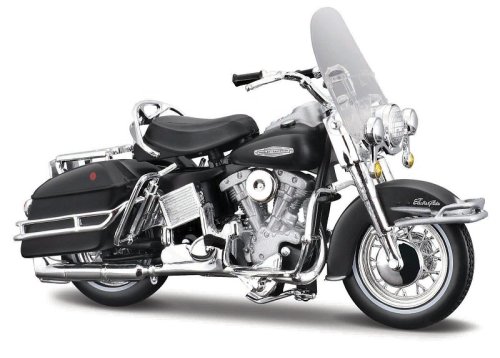 1966 FLH Electra Glide®. Motocykel Harley-Davidson FLH Electra-Glide z roku 1966 s hladším chodom a výkonnejším motorom Shovelhead. Vyrobené z kvalitných dielov s detailnou povrchovou úpravou. Otočné riadidlá a odpružené zadné koleso. Rozmery: 17,8x10,2x7cm. Vek: 3+