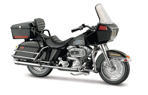 Harley-Davidson Motorcycles 1:18 – 1988 FLT Tour Glide™, čierna. Model zo série 45 collection v mierke 1:18 má veľmi dokonalé, detailné prevedenie jednotlivých častí a kvalitné farebné prevedenie. Kovový model s plastovými doplnkami. Motocykel má riaditeľnú vidlicu, pohyblivý bočný stojan a odpruženú zadnú nápravu. Model je usadený na podstavci. Balené v krabičke. Nevhodné pre deti do 3 rokov. Rozmery balenia: 10,2 x 17,8 x 7 cm. Vek: 3+