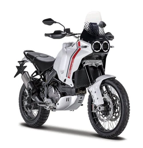 Ducati DesertX. Kovové modely motocyklov v modelovom meradle 1:18. Motocykle majú otáčavé riadidlá a odpruženú zadnú nápravu. Sú usadené na čiernom plastovom podstavci. Rozmery balenia: 16x10,5x7cm. Vek: 3+