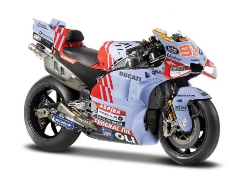 Motocykel GP Racing 1:18 Gresini Racing 2024, #93 Marc Marquez. Model oficiálneho licencovaného závodného tímu má veľmi dokonalé, detailné prevedenie jednotlivých častí a kvalitné farebné prevedenie. Kovový model s plastovými detailmi. Model má voľne sa otáčajúce kolesá a je vrátane podporného stojana. Balené v krabičke. Nevhodné pre deti do 3 rokov. Rozmery balenia: 10,5 x 17,1 x 7 cm. Vek: 3+