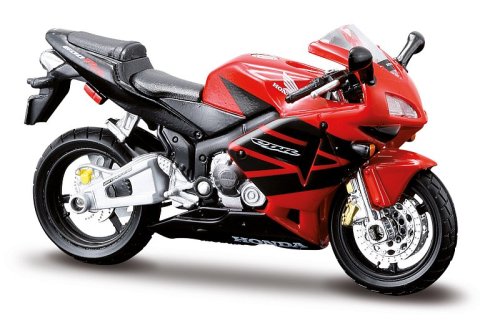 Honda CBR600RR. Kovové modely motocyklov v modelovom meradle 1:18. Motocykle majú otáčavé riadidlá a odpruženú zadnú nápravu. Sú usadené na čiernom plastovom podstavci. Rozmery balenia: 16x10,5x7cm. Vek: 3+