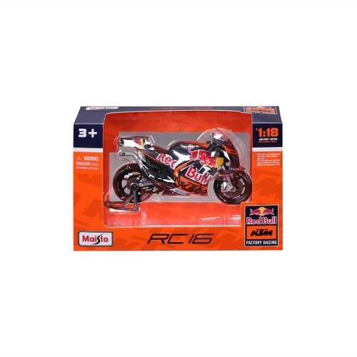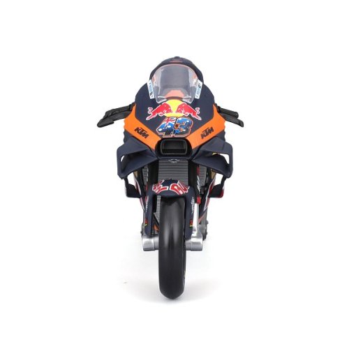Motocykel GP Racing 1:18 Red Bull KTM Factory Racing 2023, #43 Jack Miller. Model oficiálneho licencovaného závodného tímu má veľmi dokonalé, detailné prevedenie jednotlivých častí a kvalitné farebné prevedenie. Kovový model s plastovými detailmi. Model má voľne sa otáčajúce kolesá a je vrátane podporného stojana. Balené v krabičke. Nevhodné pre deti do 3 rokov. Rozmery balenia: 10,5 x 17,1 x 7 cm. Vek: 3+