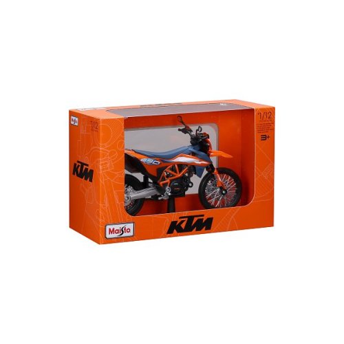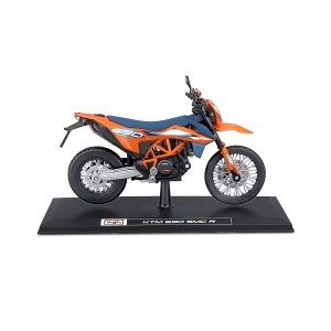 Special Edition Motorcycles 1:12 2023 KTM 690 SMC R. Modely motocyklov Special Edition sú balené vrátane stojanu v krabičke vo farbách, ktoré sú špecifické pre výrobcu. Kovový model s plastovými doplnkami. Model má odpruženú zadnú nápravu, pohyblivý bočný stojan a voľne otáčajúce kolesá. Nevhodné pre deti do 3 rokov. Rozmery balenia: 13,97 x 22,3 x 8,89 cm. Vek: 3+