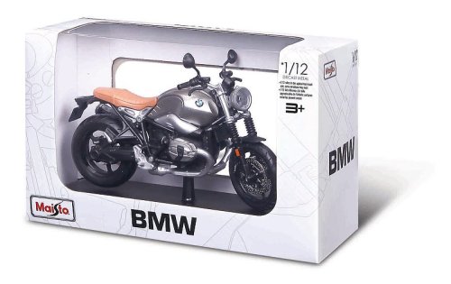 Special Edition Motorcycles 1:12 BMW R nine T Scrambler. Modely motocyklov Special Edition sú balené vrátane stojanu v krabičke vo farbách, ktoré sú špecifické pre výrobcov. Kovový model s plastovými doplnkami. Model má odpruženú zadnú nápravu, pohyblivý bočný stojan a voľne otáčajúce kolesá. Nevhodné pre deti do 3 rokov. Rozmery balenia: 13,97 x 22,3 x 8,89 cm. Vek: 3+