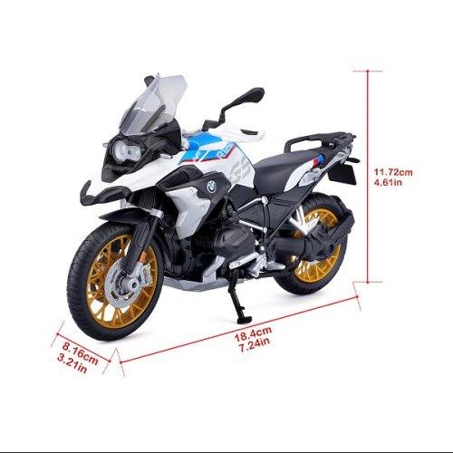 Special Edition Motorcycles 1:12 BMW R1250 GS. Modely motocyklov Special Edition sú balené vrátane stojanu v krabičke vo farbách, ktoré sú špecifické pre výrobcu. pre deti do 3 rokov. Rozmery balenia: 13,97 x 22,3 x 8,89 cm.