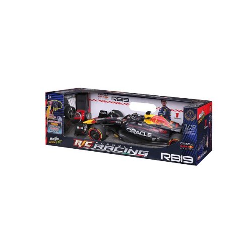 RC model Oracle Red Bull Racing RB19 - #1 Max Verstappen v mierke 1:10 je precízne spracovaná replika, ktorá zachytáva elegantný aerodynamický dizajn a odvážnu farbu súťažného vozidla formule Red Bull Racing 2023. Je skonštruovaný pre rýchlosť a obratnosť a ponúka nadšencom strh RB19. Približne 57 cm dlhý. Autentické zvuky Red Bull RB19. 2,4 GHz pre špičkový výkon. Až 4 hráči môžu riadiť v jednom okamihu a na jednom mieste. Dosah ovládania 35 metrov. Ovládač v profesionálnom štýle s proporcionálnym ovládaním rýchlosti. Nastavenie nastavenia riadenia. Vozidlo využíva lítiovú dobíjaciu batériu (je súčasťou balenia). Nabíjací kábel USB (súčasťou dodávky). Nabíjanie batérie trvá približne 2,5 hodiny. Ovládač funguje na 2 batérie AA (sú súčasťou). Balené v krabičke. Rozmery auta: 20,39 x 12,19 x 57,14 cm. Rozmer balenia: 21,6 x 67,3 x 24,5 cm. Vek: 8+