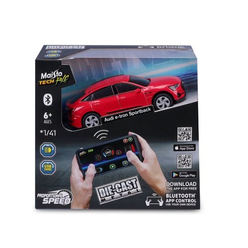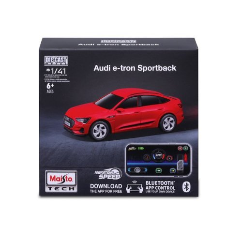 Zažite budúcnosť RC s Maisto mini kovovým RC modelom Audi e-tron Sportback so svetlami, ovládaným cez Bluetooth. Popustite uzdu sile a ovládajte tento zázrak v mierke 1:41 ako skutočný automobilový nadšenec. Vaše obľúbené modely z liateho kovu sú teraz ovládané vašim smartfónom. Sila je vo vašich rukách. 2,4 GHz pre špičkový výkon. Vozidlo využíva lítiovú batériu, ktorá je dobíjacia pomocou nabíjacieho kábla USB C (batérie aj kábel sú súčasťou balenia). Balené v krabičke. Rozmery balenia: 14 x 15,2 x 6,35 cm. Vek: 6+