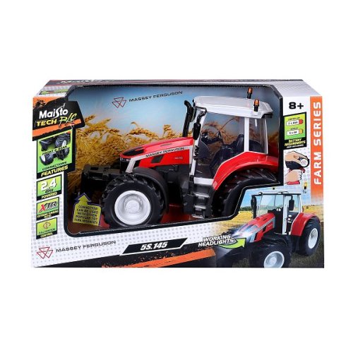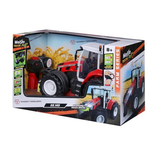 Massey Ferguson Tractor, červená. RC Model klasického poľnohospodárskeho traktora na diaľkové ovládanie od značky Maisto. 2,4 GHz – až pre 4 osoby. Fungujúce svetlomety. Ovládač Mini-Pro. Auto potrebuje pre svoju prevádzku 4xAA batériu (nie sú súčasťou). Ovládač funguje na 2x AAA batérie (nie sú súčasťou). Dosah ovládača až 35 m. Rozmery balenia: 25,4 x 41,3 x 20,36 cm. Vek 8+