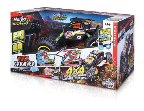 RC Rock Crawler Pro Series 4WS. Toto jedinečné terénne vozidlo je vybavené skutočným riadením všetkých 4 kolies. Pomocou prepínača na ovládači je možné vybrať, ktoré kolesá budete ovládať. Predné a zadné kĺbové odpruženie kolies. Pohon všetkých štyroch kolies. 2,4 GHz pre špičkový výkon. Ovládací rozsah je 35 metrov. Možnosť ovládania naraz a na jednom mieste až pre 4 osoby. Nastavenie vyrovnania riadenia. USB dobíjacia batéria 6,4 V Li-ion (500mAh), ktorá je súčasťou balenia. USB nabíjací kábel (súčasťou balenia). Ovládač funguje na 2 AA batérie (súčasťou balenia). Rozmery balenia: 27,9 x 50,8 x 30,5 cm. Odporúčaný vek: 8+