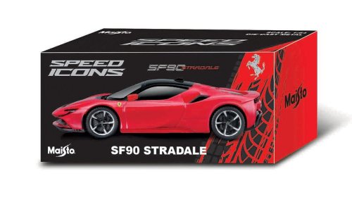 Speed Icons 1:64 Ferrari SF90 Stradale červeno-čierne. Modely Speed Icons sú zbierkou tých najzaujímavejších, najúžasnejších a najvýkonnejších vozidiel, ktoré svet ponúka. Od super vozidiel za vysoké ceny až po najšialenejšie, nadmieru výkonné moderné autá. Nová úroveň dizajnu a pozornosť venovaná detailom ako žiadna iná. Karoséria aj podvozok sú vyrobené z liateho kovu. Model v mierke 1:64 má otváracie dvere, dvojdielne kolesá s odpružením a pneumatikami zo skutočnej gumy. Balené v prémiovom úložnom boxe. Nevhodné pre deti do 3 rokov. Rozmery balenia: 17,8 x 14 x 5 cm. Odporúčaný vek 8+