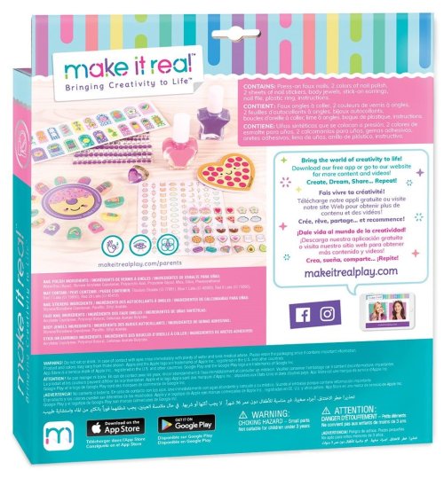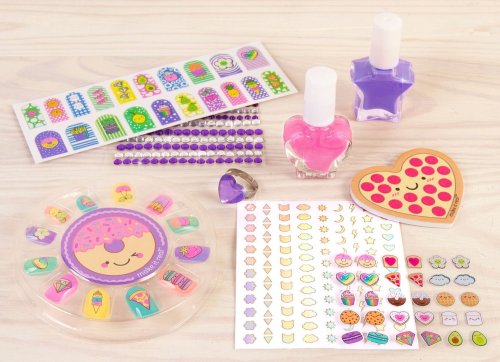 V balení sú dva laky na nechty, pilník na nechty, dva archy so samolepkami, hárok s nalepovacími náušnicami, dekoračné kamienky, prstienok.
